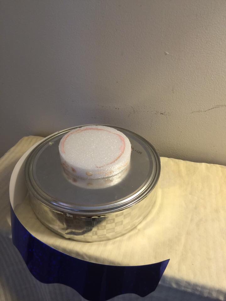 Cookie can, no need to paint since it will be covered with your trim if you like. Next glue foam in center of can