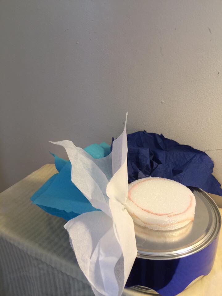 Cookie can, no need to paint since it will be covered with your trim if you like. Next glue foam in center of can